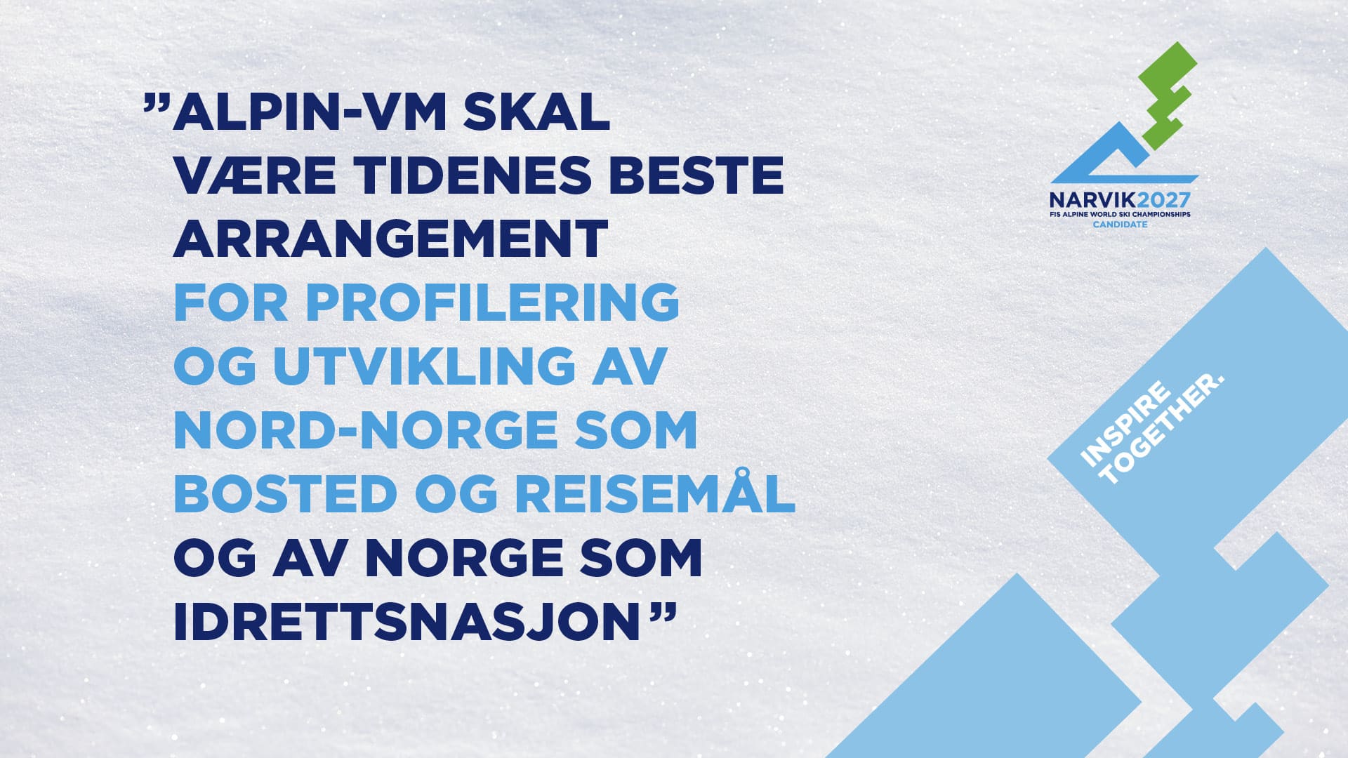 Regjeringen stiller opp med statsgaranti på hele søknadsbeløpet – 280 millioner kroner – for å realisere VM i alpint i Narvik i 2027.